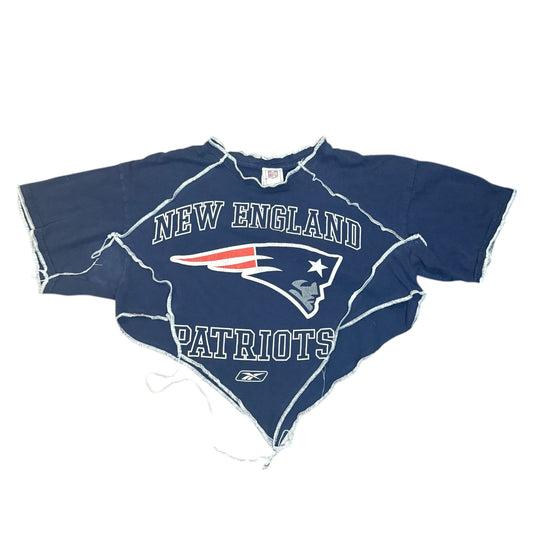 New England Patriots Reworked Contrast Stitch V Cut Crop Top