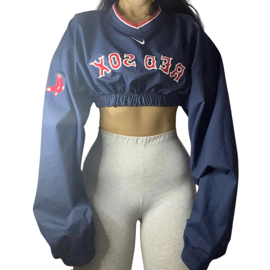 Boston Red Sox Reworked Crop Contrast Stitch Top