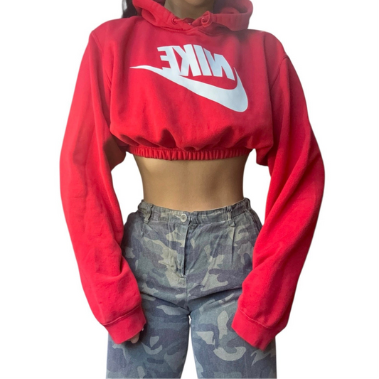 Nike Reworked Custom Crop Fleece 90s Sports Hoodie Sweatshirt