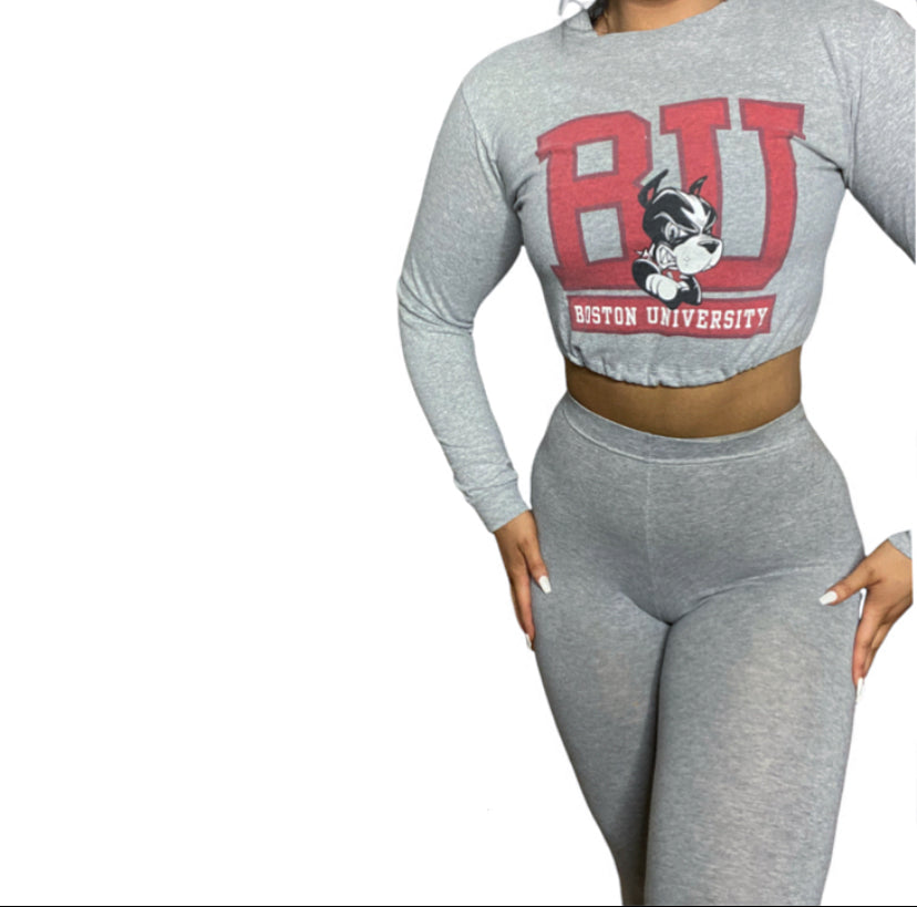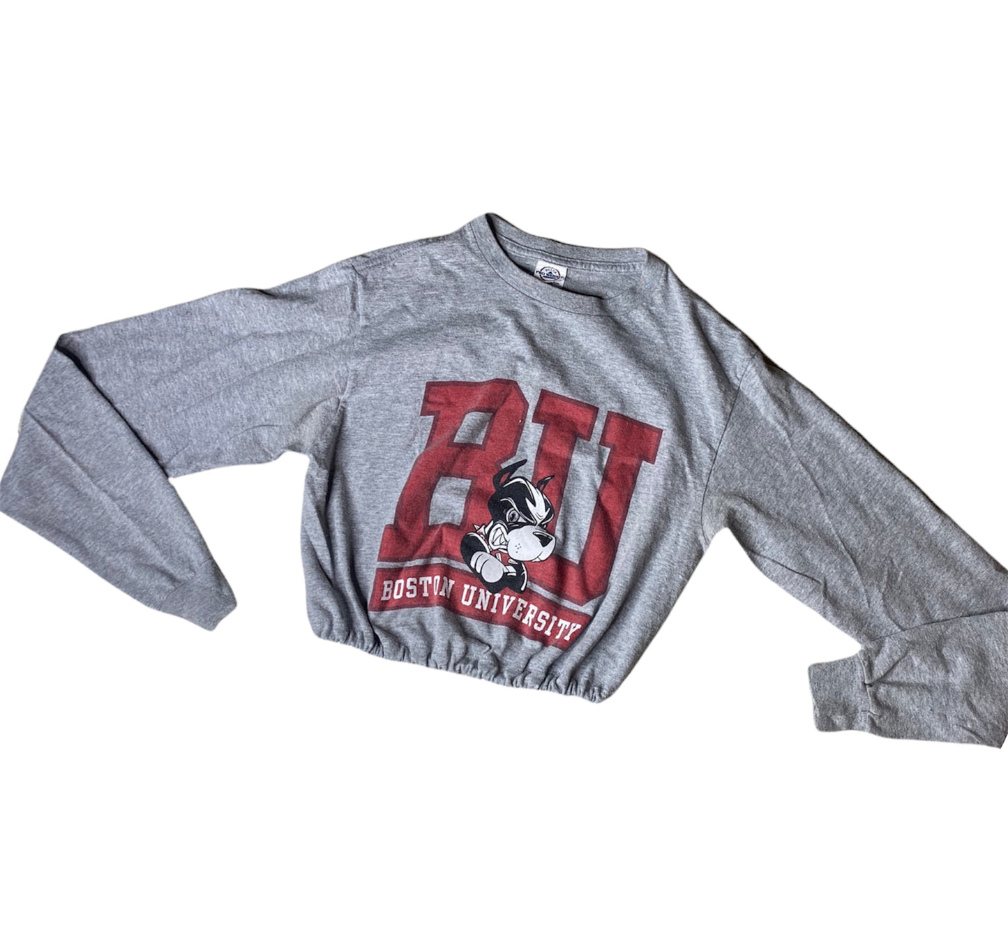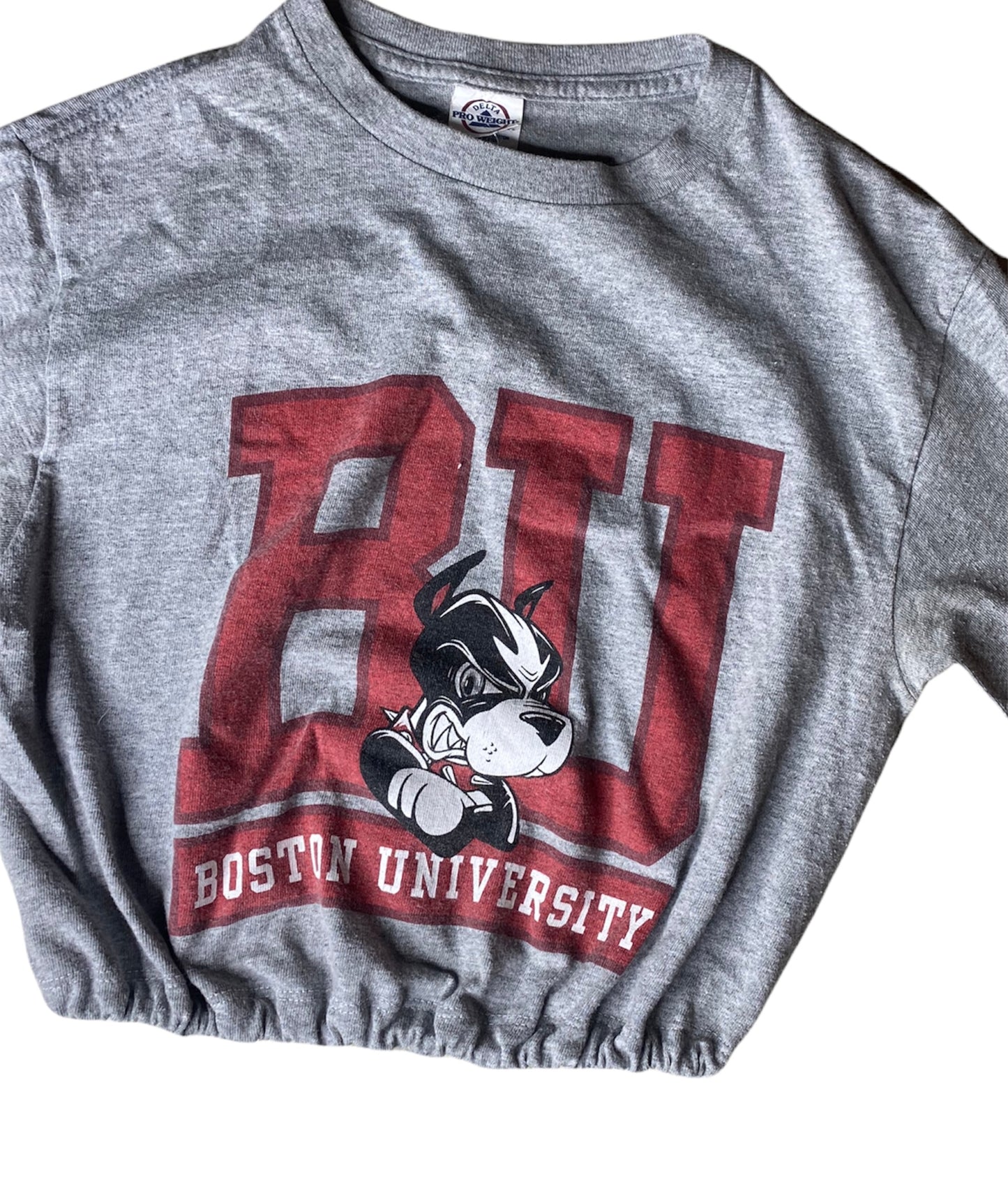 boston university - reworked crop top - cute college graphic - elastic waist band