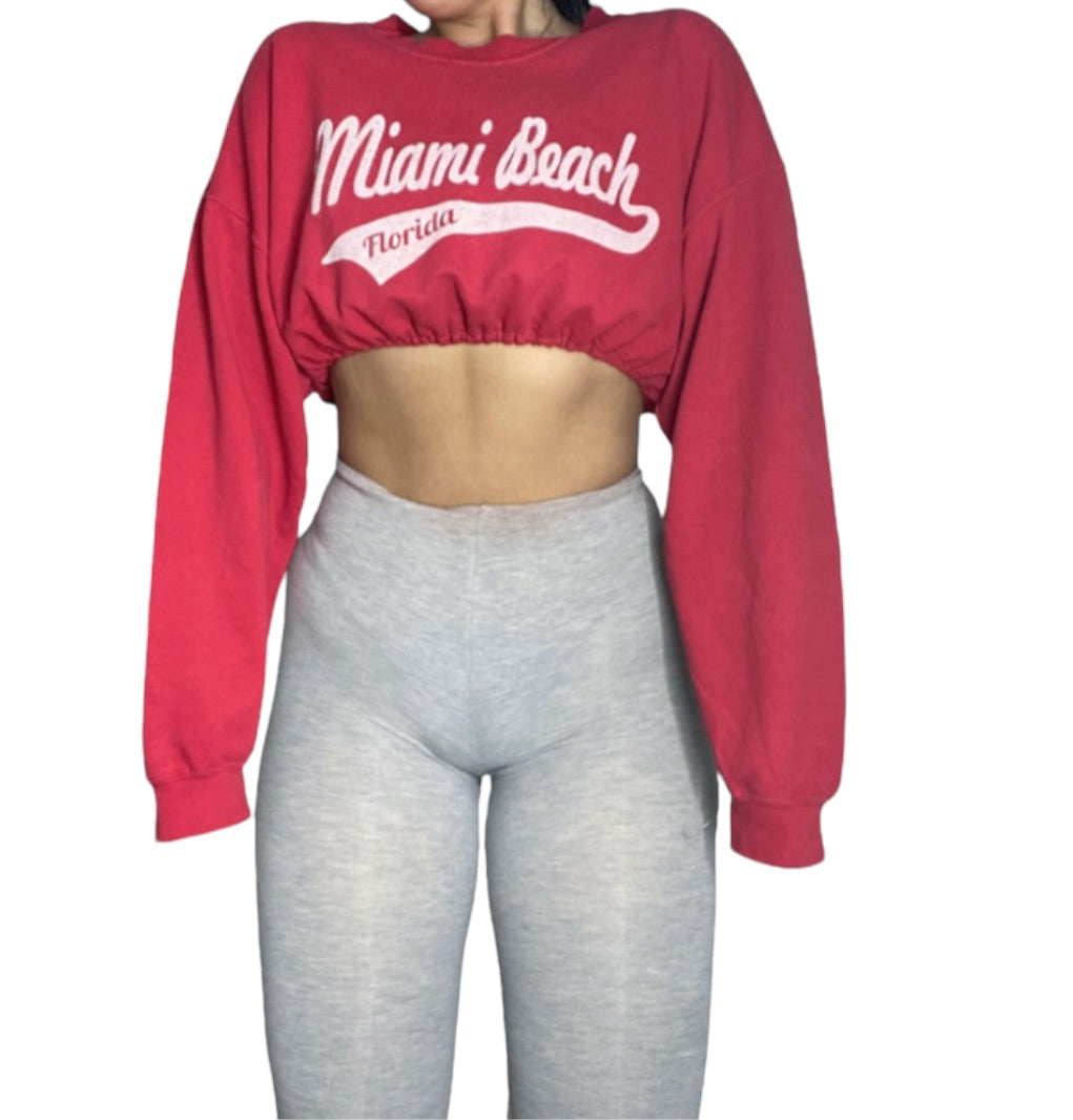 reworked custom Miami Beach Florida Crop Crewneck Sweatshirt