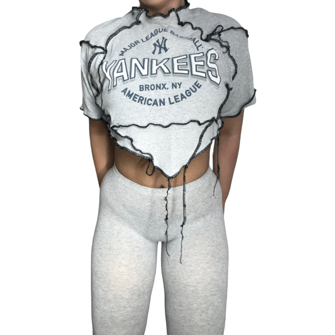 reworked custom New York Yankees crop top - Grey Bronx NY American league vintage graphic tee