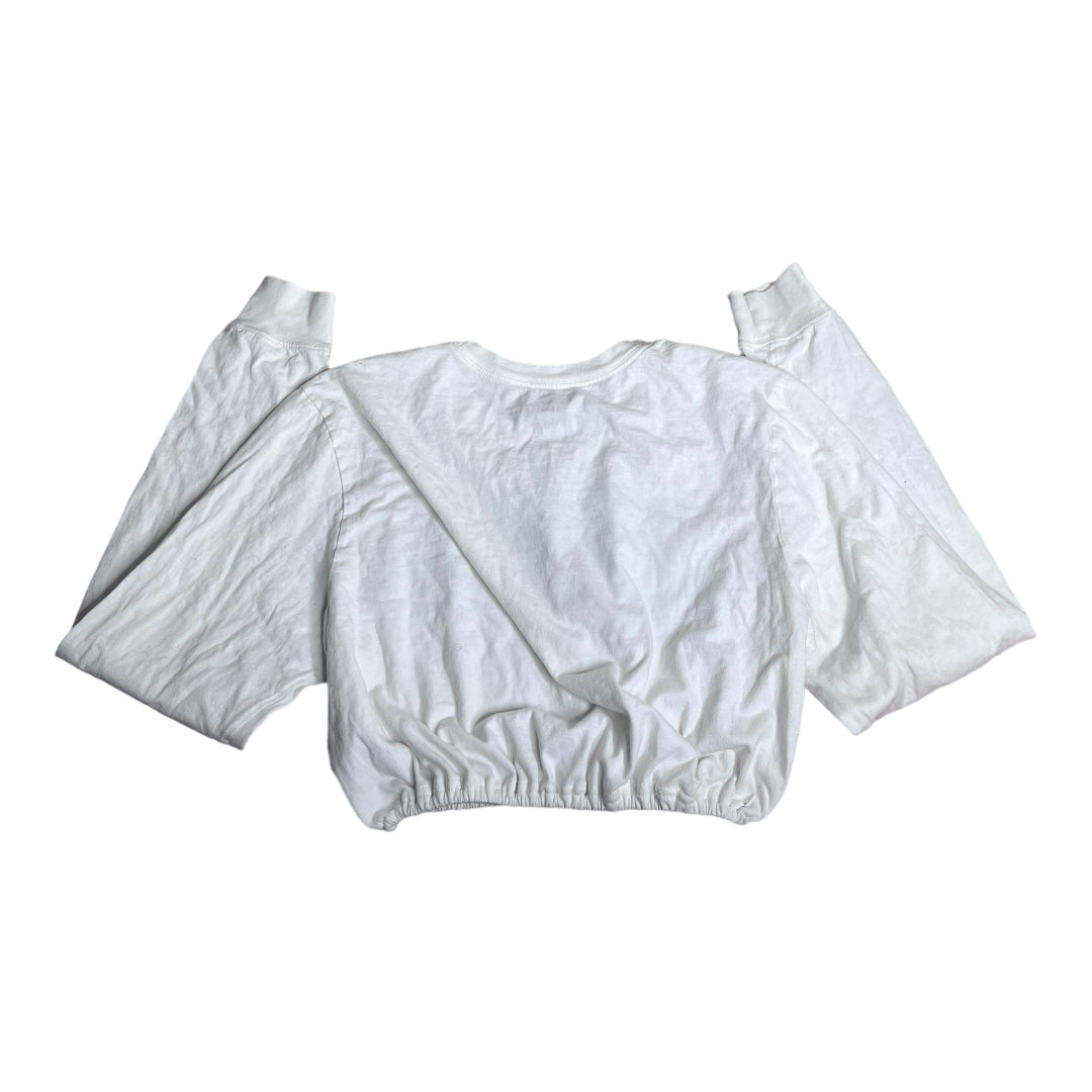 size large originally . Fits small to medium best. depending on if you like it fitted or oversized. Medium modeling.