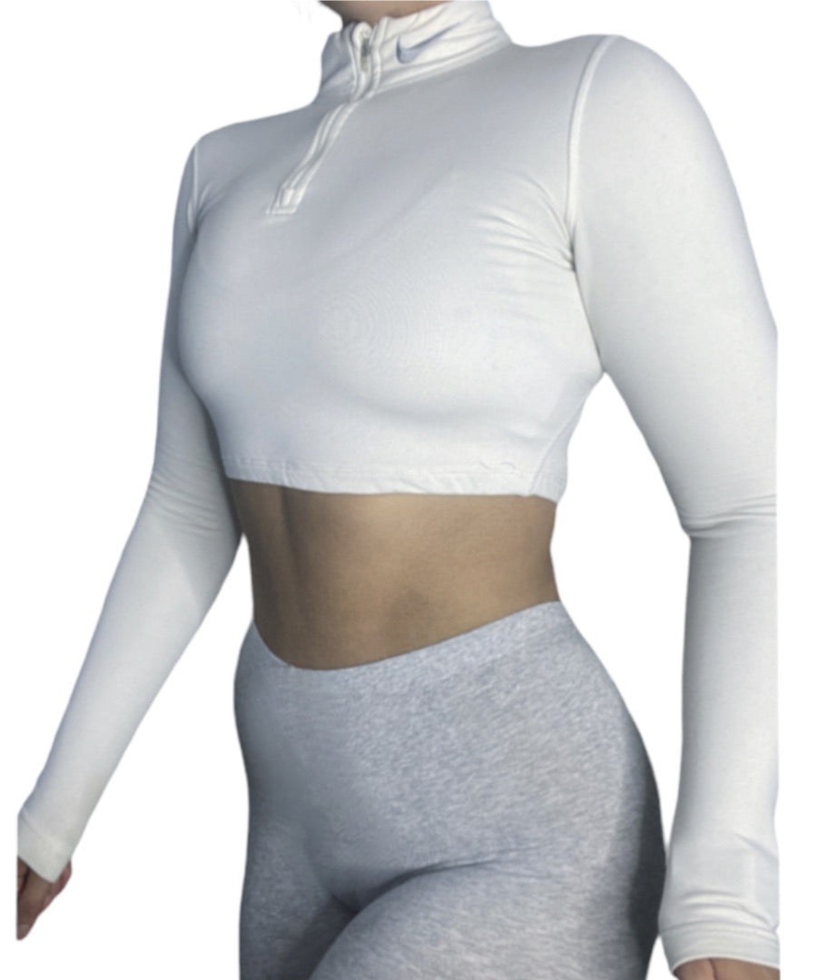 reworked white nike cropped quarter zip