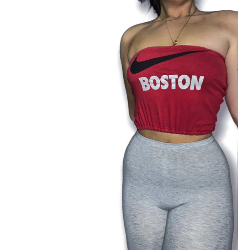 reworked nike x boston crop tube top