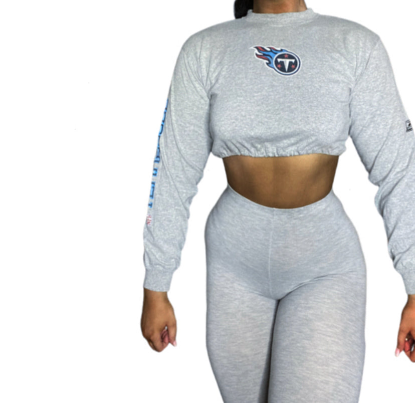 Tennessee Titans Reworked Long sleeve Crop Top - Elastic waist band - custom made