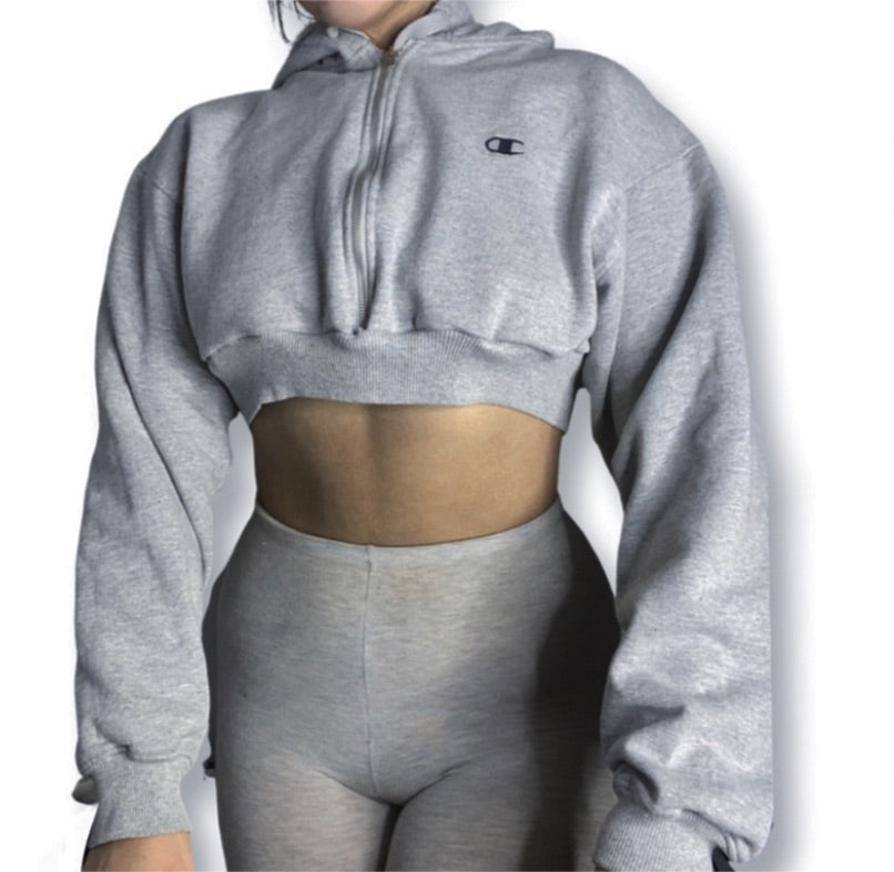 Vintage Champion Reworked Crop Zip Up Hoodie