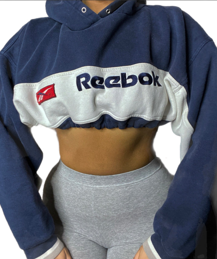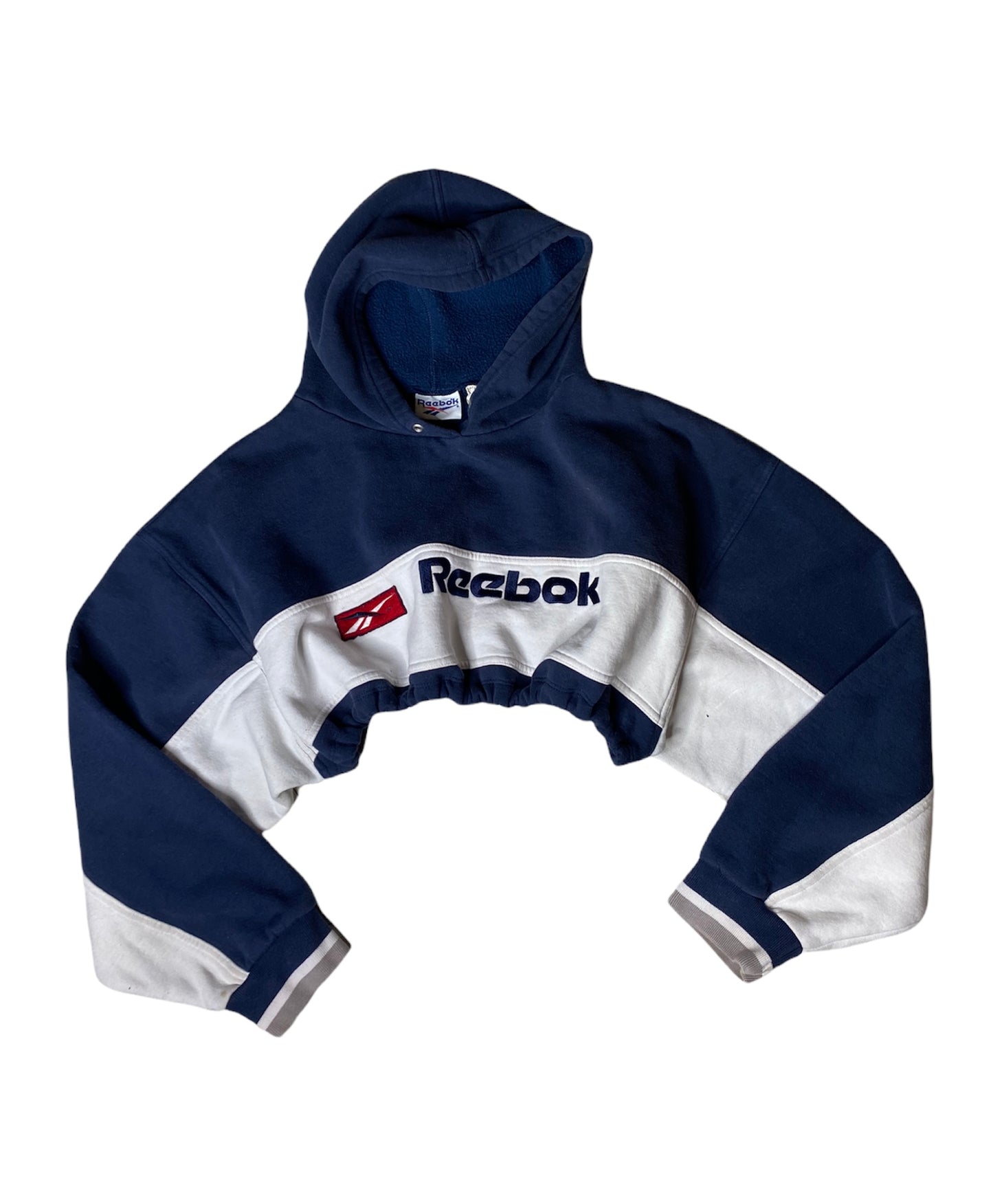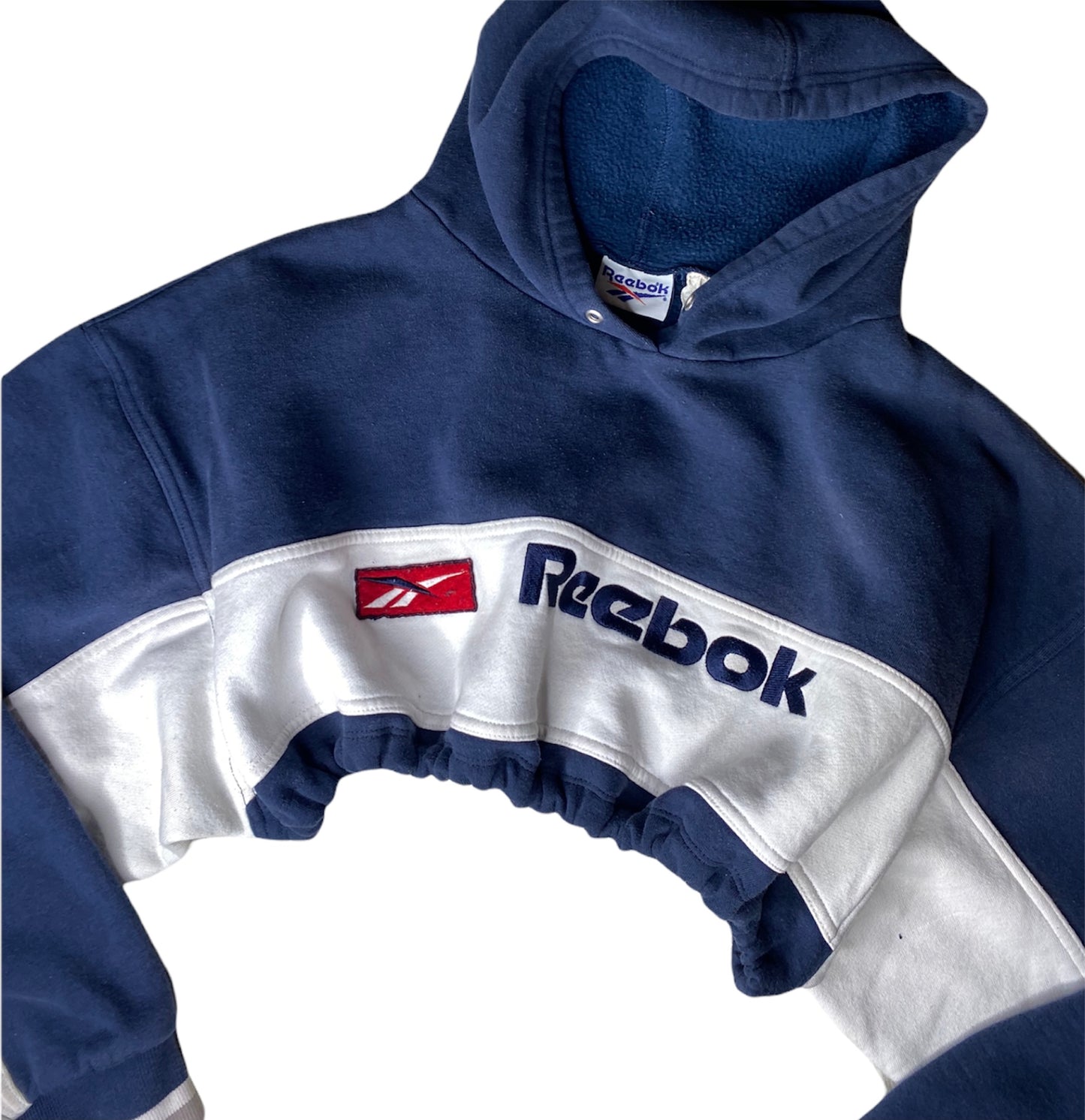 vintage 80s 90s tag reebok reworked crop hoodie sweatshirt / elastic waist